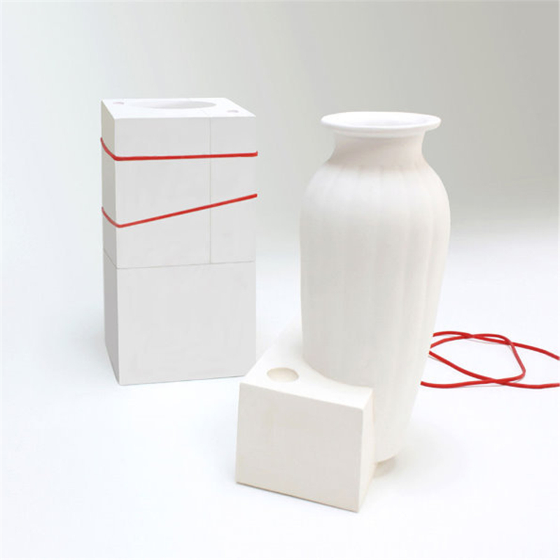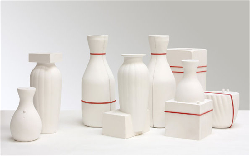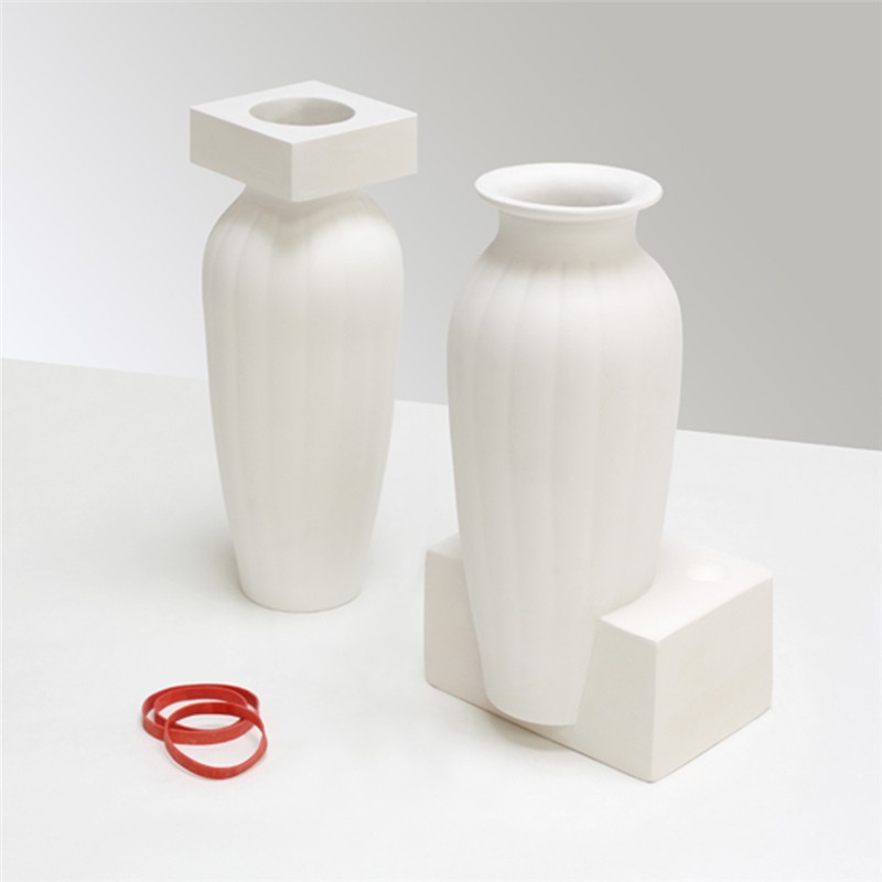 石膏注漿成型的模具通常在使用后就被丟棄。這些白色優(yōu)美剛?cè)岵?jì)的花瓶從模具中來(lái)并表達(dá)出通常不為人們所見(jiàn)的模具之美。